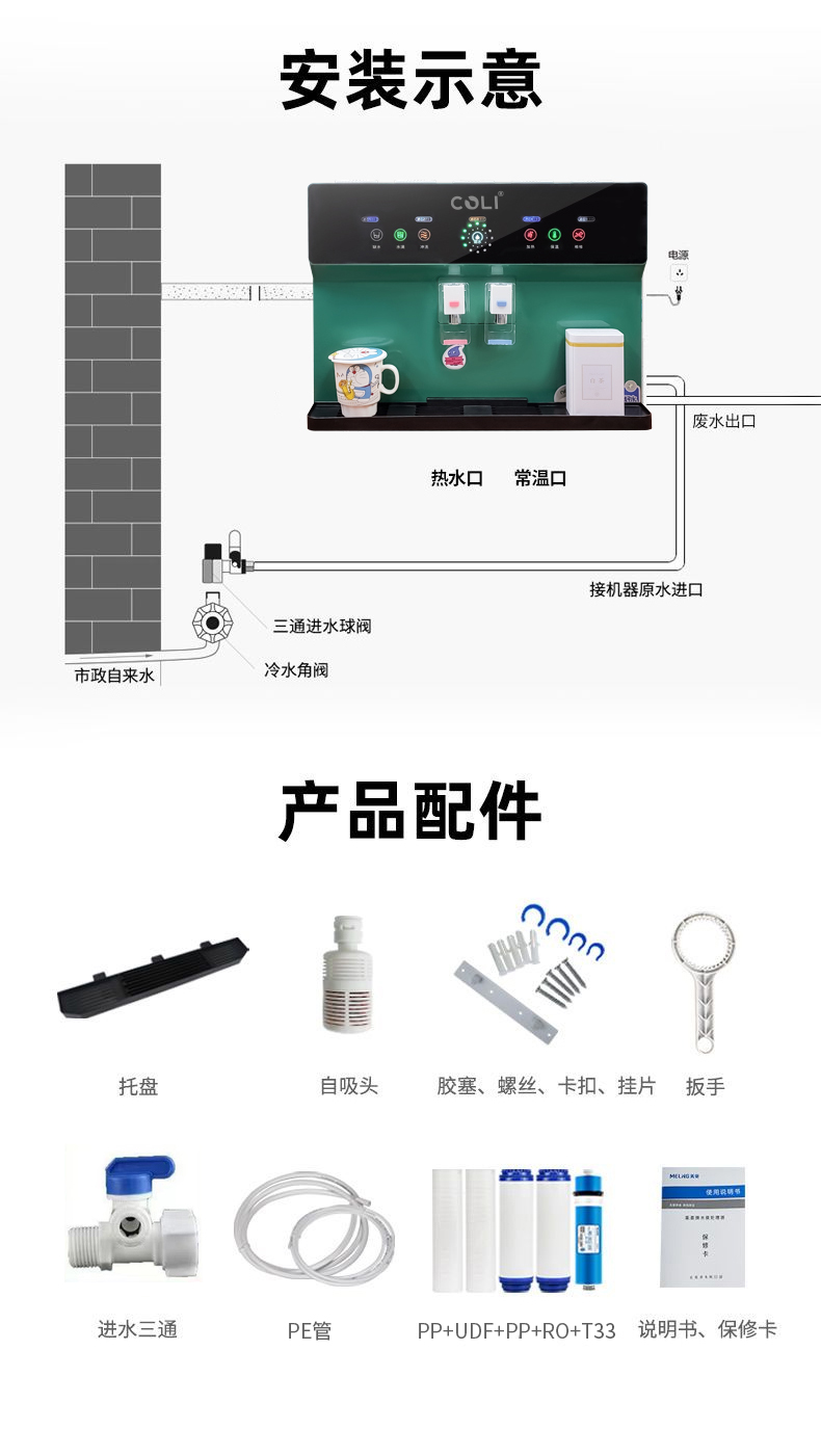 科淋家用净化加热一体RO机,五级过滤可壁挂可台上自带吸水功能