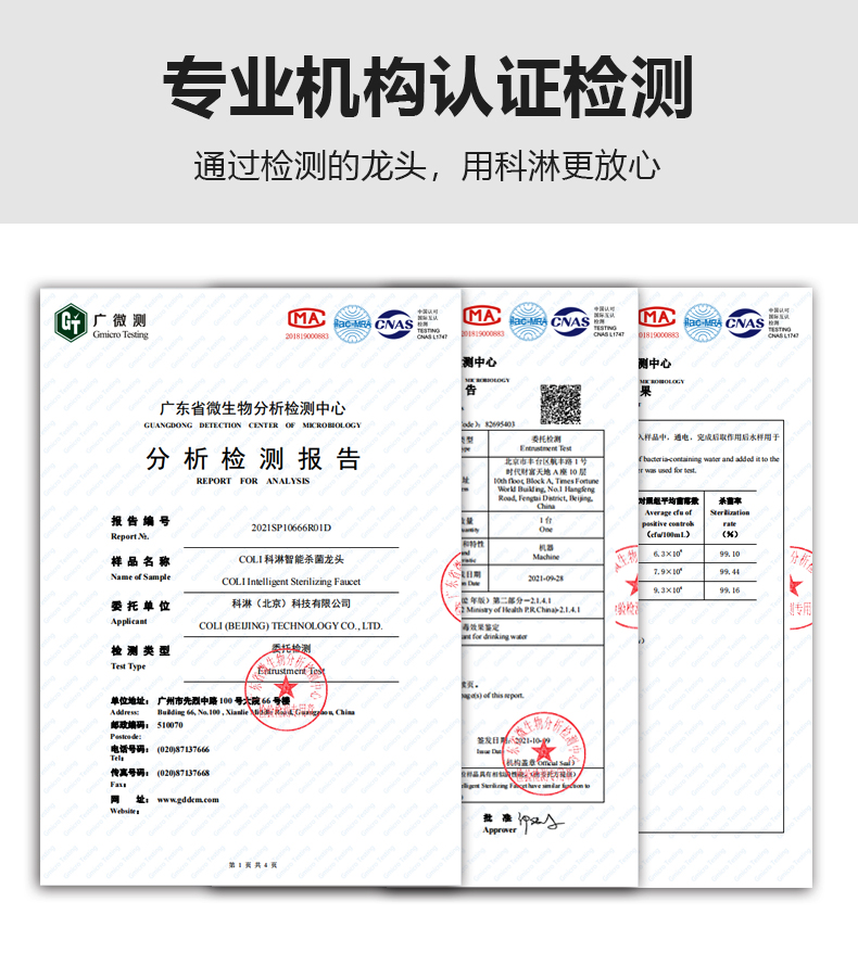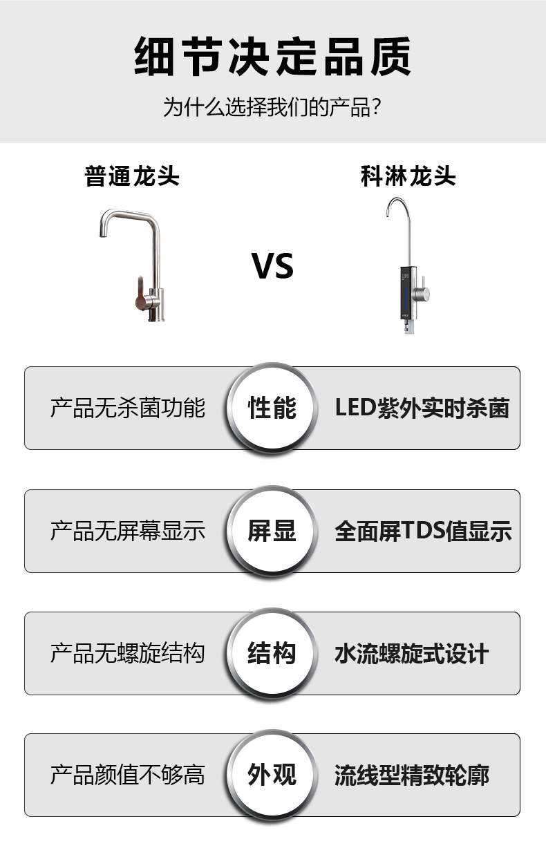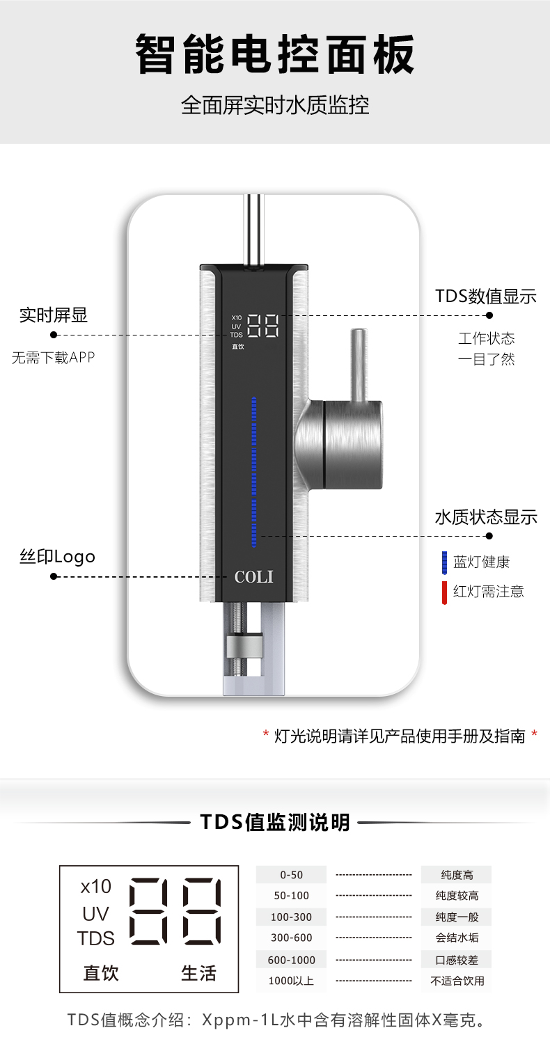 科淋家用杀菌水龙头UV杀菌杀灭大肠杆菌率可达99%