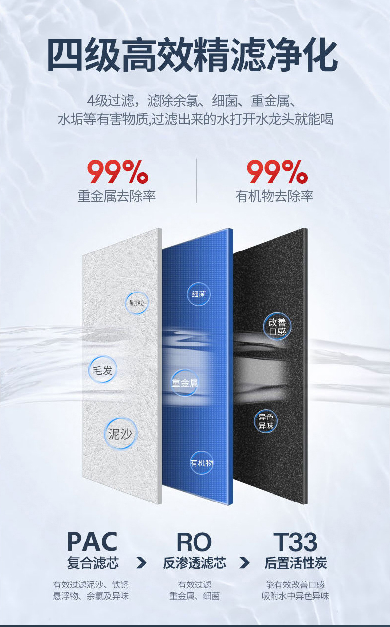 科淋600加仑反渗透净水器 家用厨下直饮机双出水
