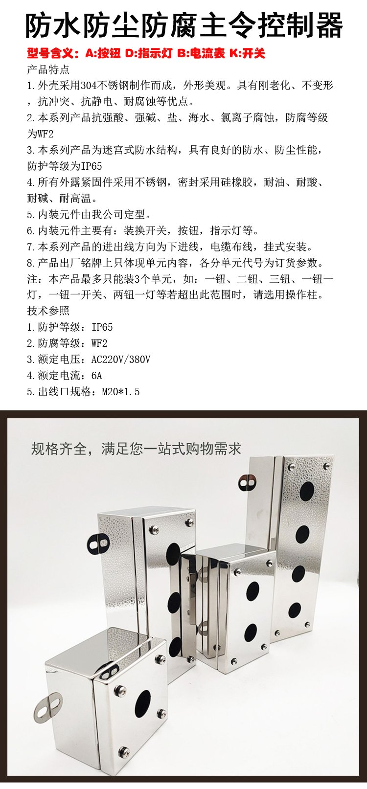 不锈钢按钮盒FZA-G-A2K1防水防尘防腐主令控制器304金属开关盒WF2