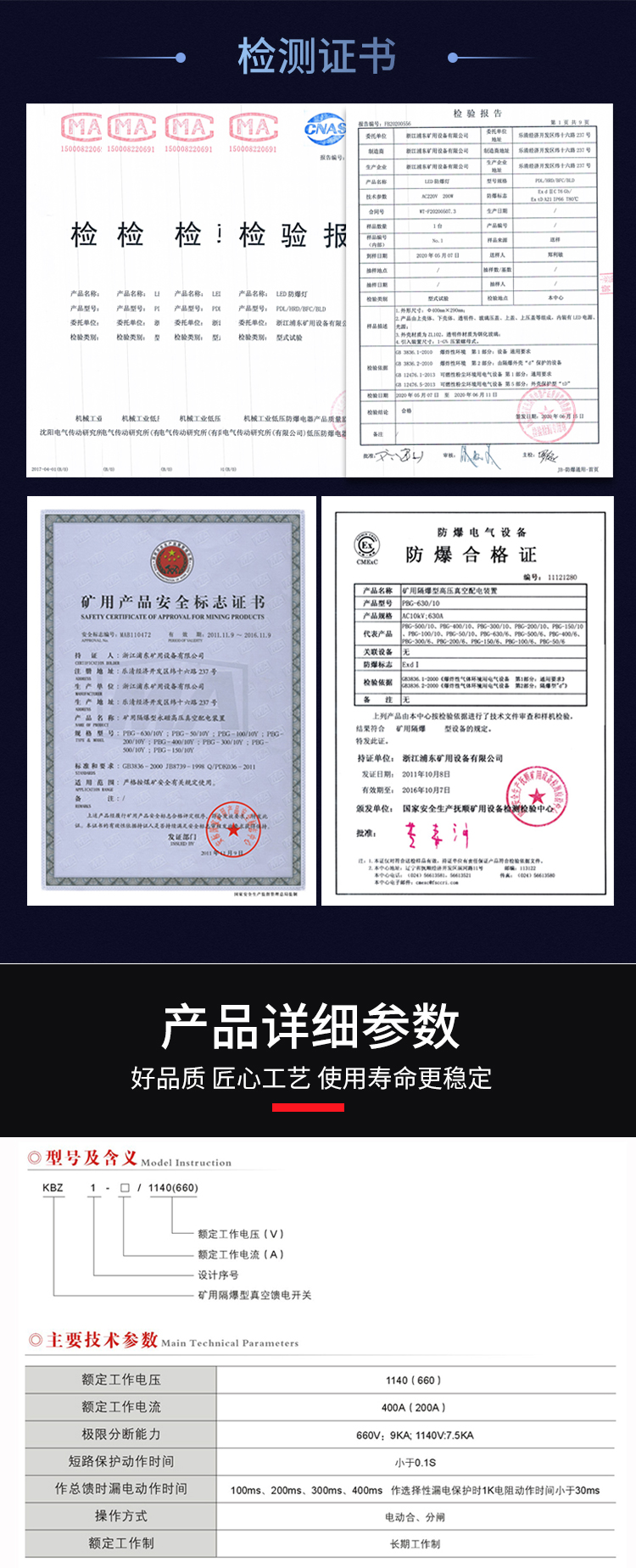 矿用隔爆真空馈电开关 矿井用防爆兼本质安全型KBZ1-4001140/660 额定电压 | 220V | ||