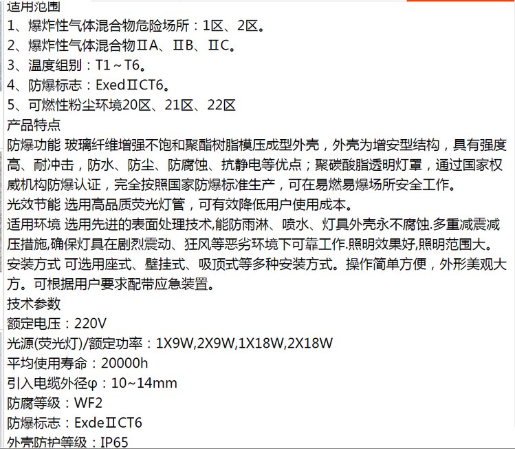 防爆标志 | ExdeⅡCT6 | ||