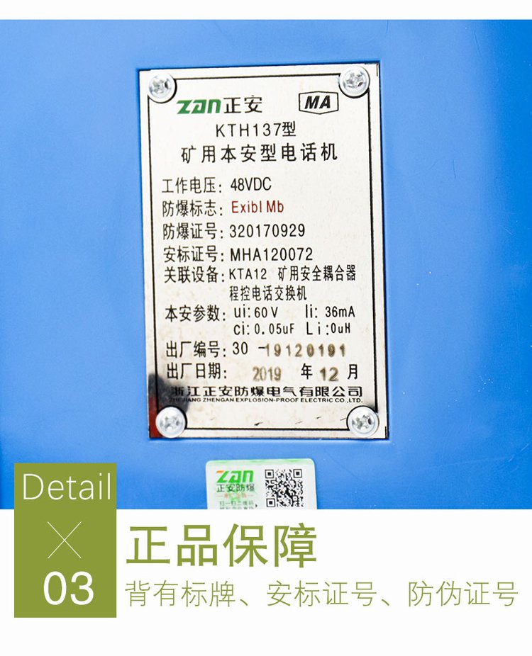 煤矿用数字本安型挂式电话机正安防爆KTH137蓝色对讲机