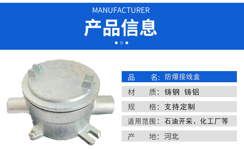 IIB 防爆接线盒G3/4二通 内带接线 接地端子 圆形 保护方式 | 综合 | ||