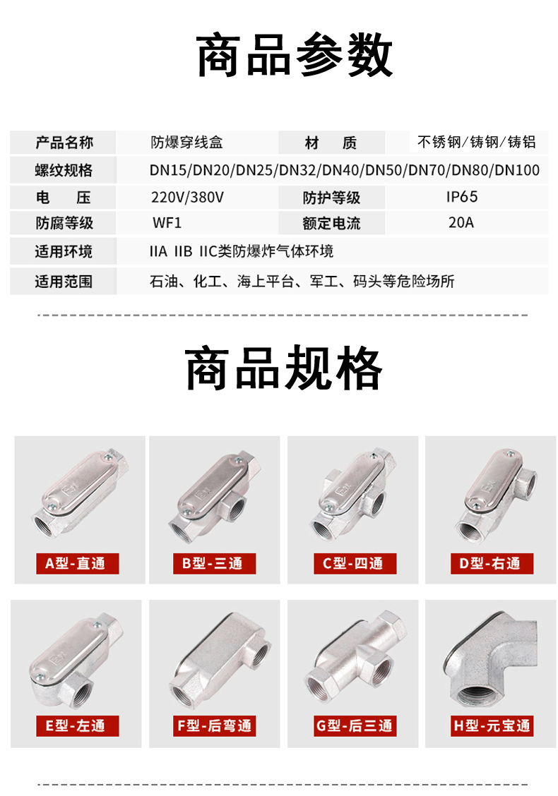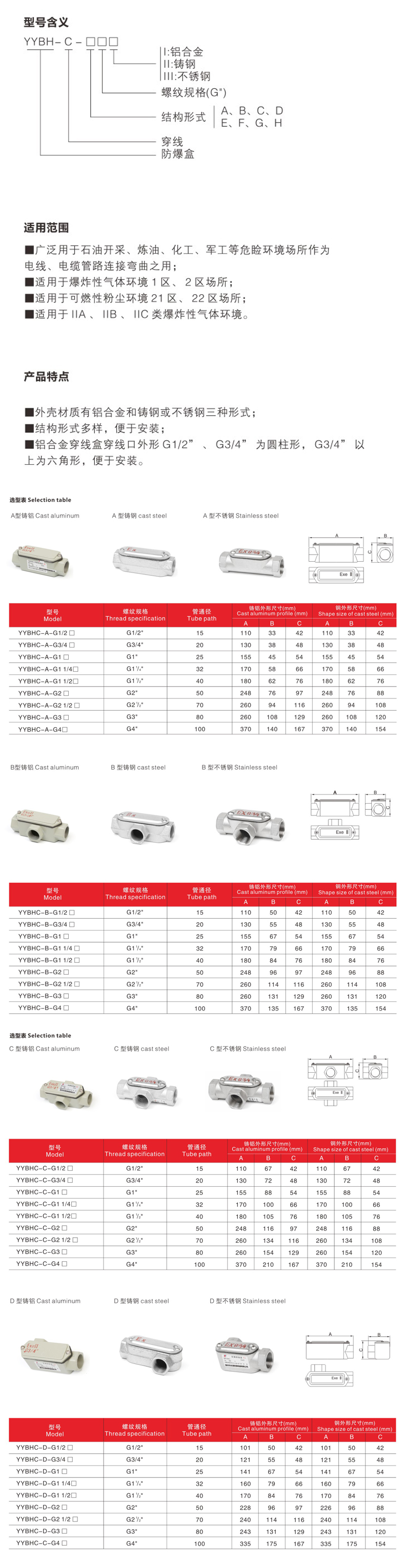 直通 防爆穿线盒 从G1/2到4寸 双外 按需加工 钢厂可用 永源 名称 | 铸钢防爆穿线盒 | ||
