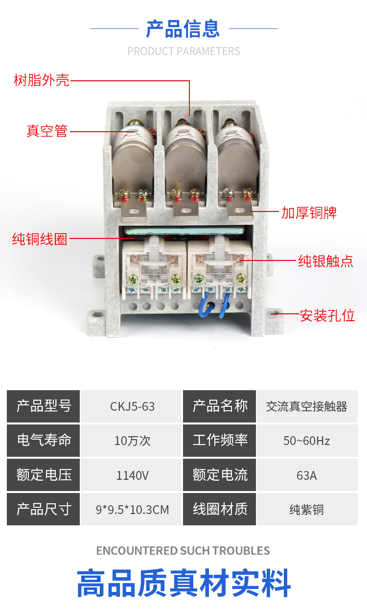 CKJ5-63交流真空接触器1140V纯紫铜矿用控制电动机用