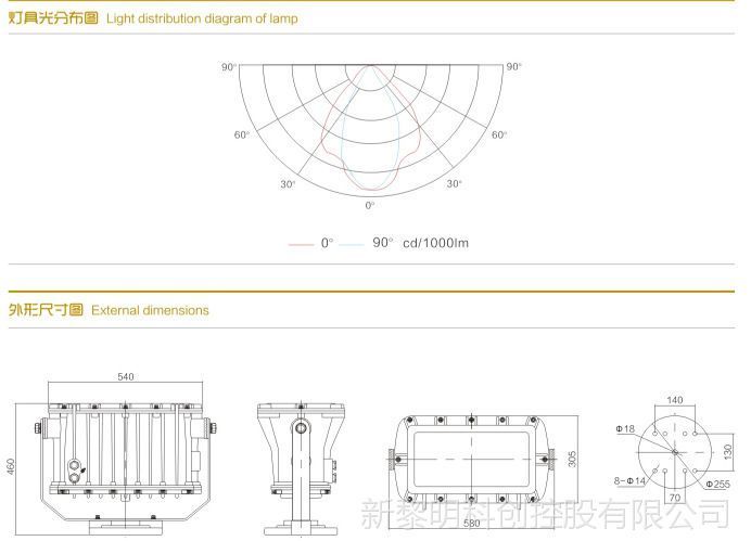 ? 的配光设计,配合镜面高纯铝反光镜,实现大范围泛光照明。