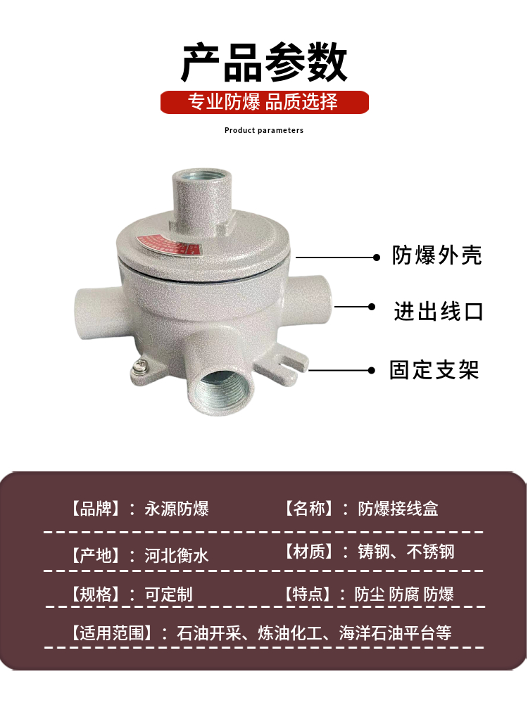 永源阻燃隔爆型低压电缆防爆接线盒防爆电缆分线盒