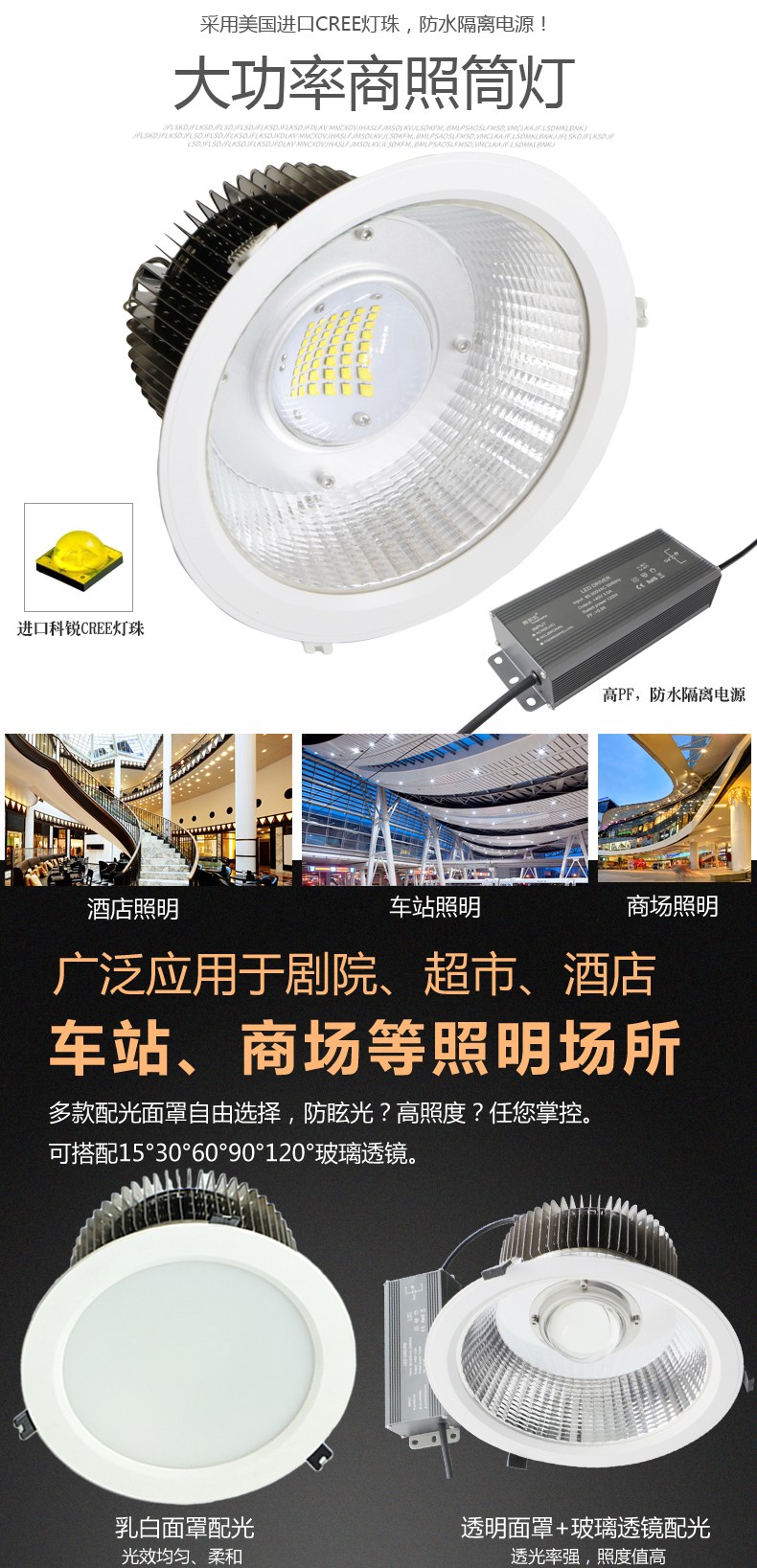 80W筒灯,80WLED筒灯,100W筒灯,暗装筒灯,嵌入式筒灯,大功率LED筒灯,明装筒灯,白色筒灯,免开孔LED筒灯,吊顶LED筒灯,吸顶LED筒灯适用于大型超市、展览馆、体育馆、商场、车站、地铁站及其他需要照明的场所。