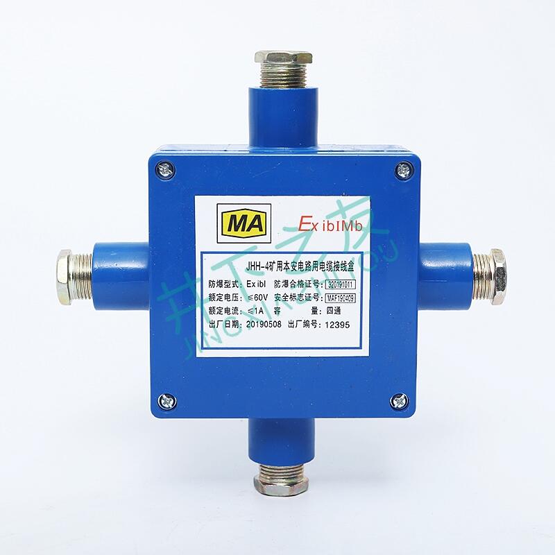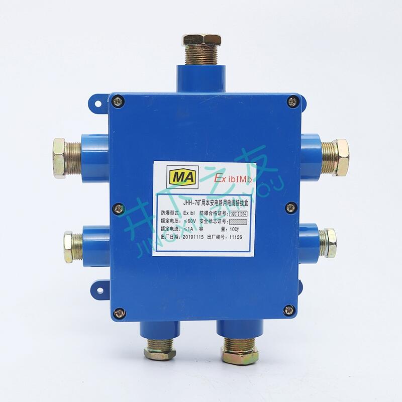 用途:本安电路用接线盒适用煤矿井下瓦斯和煤尘爆炸的环境,作为电气设备之间,连接本质安全型电路的电缆接线、分线之用。
