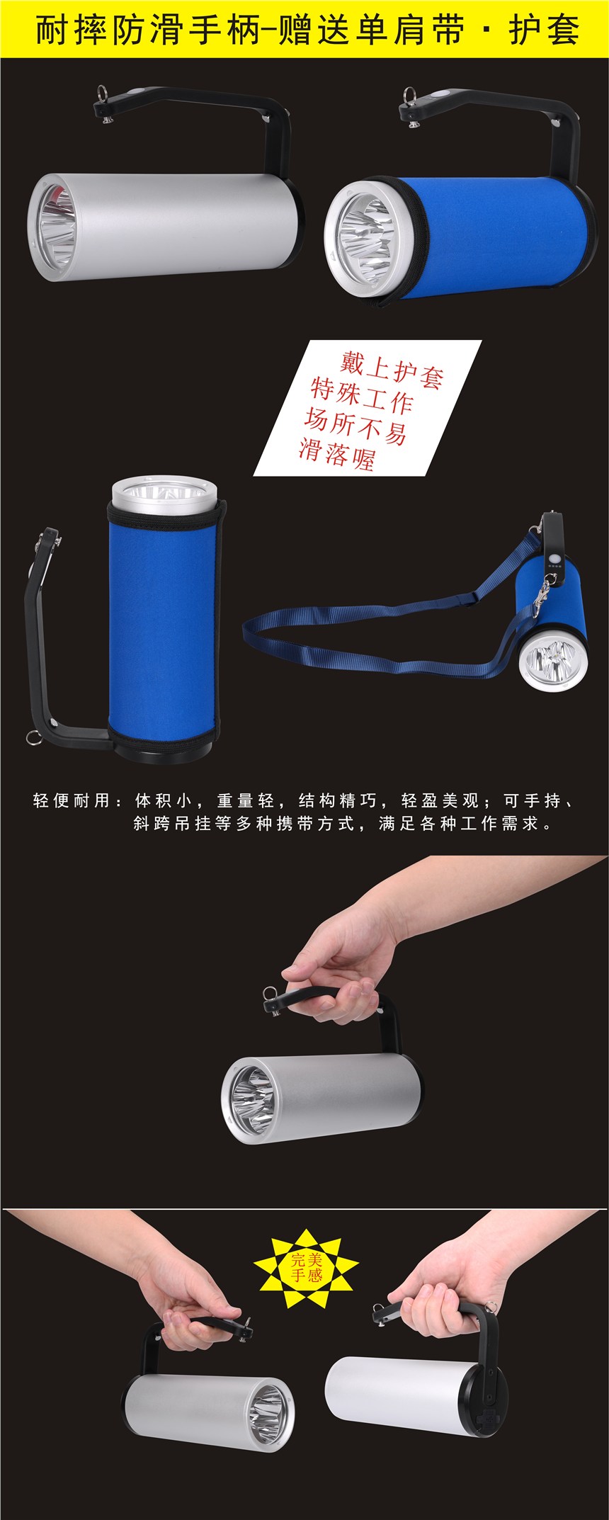 5、采用固态免维护LED光源,光效高,聚光好,平均使用寿命长达10万小时;在照明功能的基础上还增加了频闪光功能,可作远距离信号指示用。