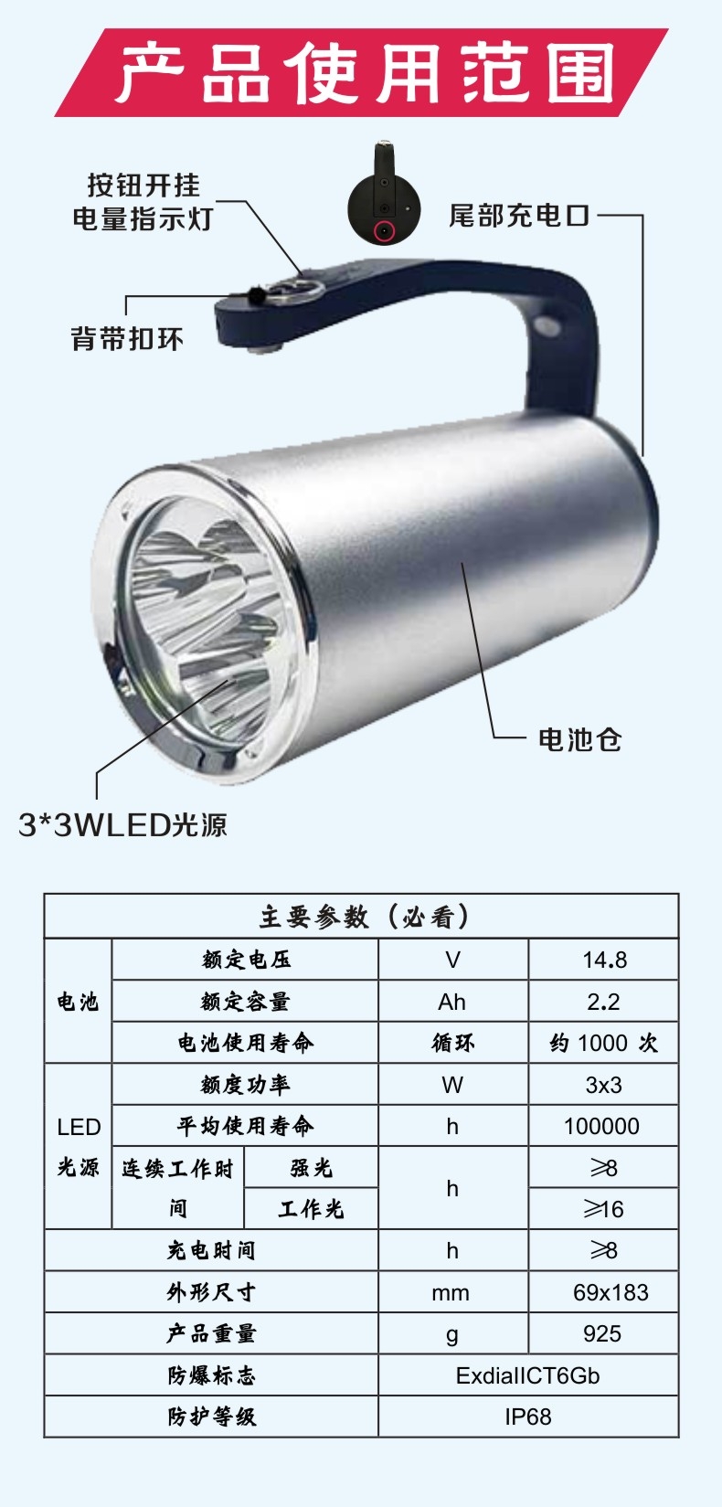 便携LED工作YJ1201巡检灯BAD305手提式防爆探照灯