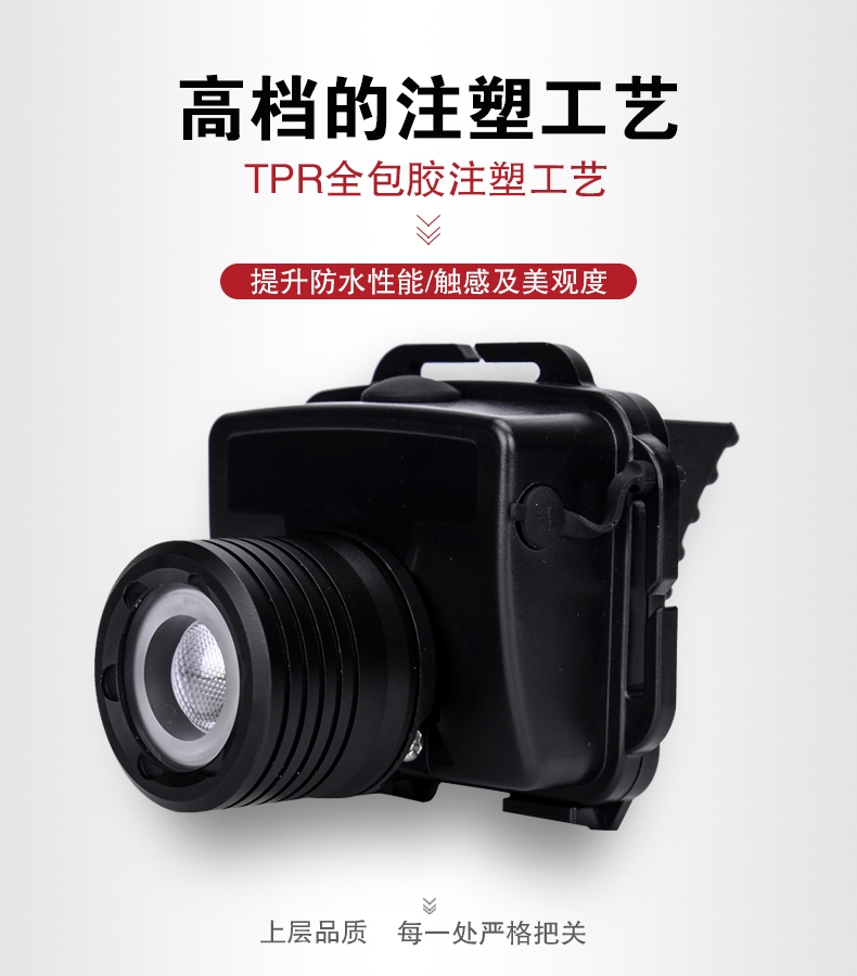 智能调焦:外壳采用进口PC合金材质,抗强力冲击,防水、防尘绝缘、腐蚀性能好,头部采用拉伸变焦模式,可轻松实现泛光与聚光的转换,满足更多用户需求;