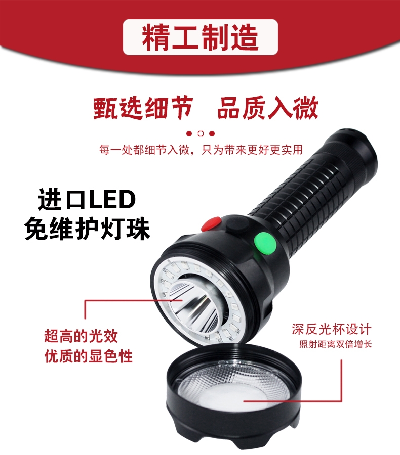 ◆结构合理:深反光杯设计,主照明照射距离远;透明件进行特殊处理,能有限避免假显示现象的发生,确保现场使用安全;