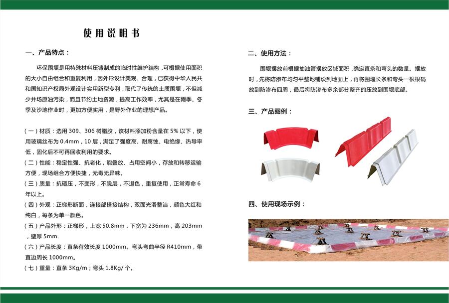 本产品取代了传统的土质围堰,不但减少了污染,而且节约土地资源,提高工作效率,是野外作业的理想产品。