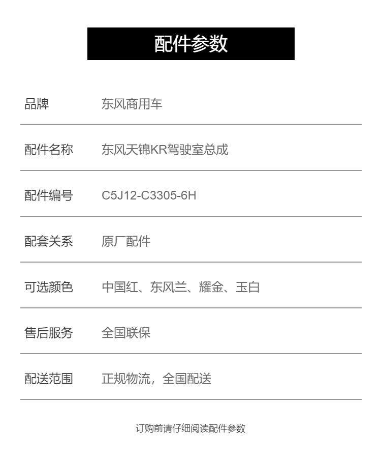 东风天锦KR驾驶室总成_原厂配件_全国联保_车商汽配诚信代理经销