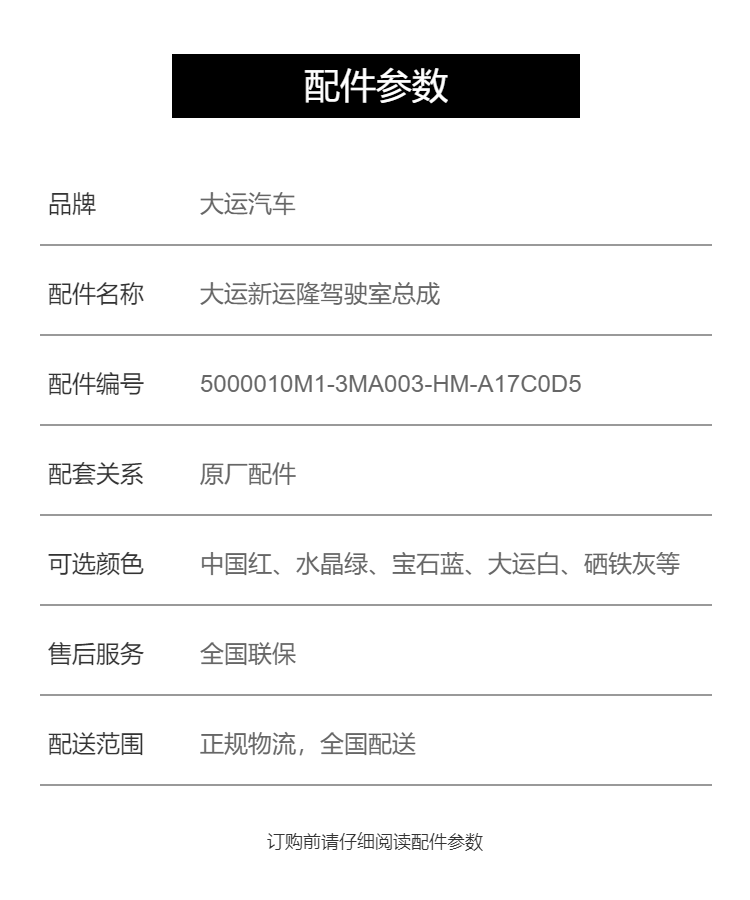 • 规格:原厂驾驶室总成