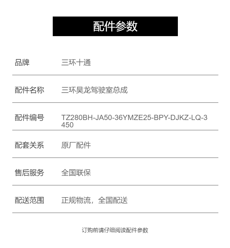 规格 | 三环昊龙原厂配件 | ||