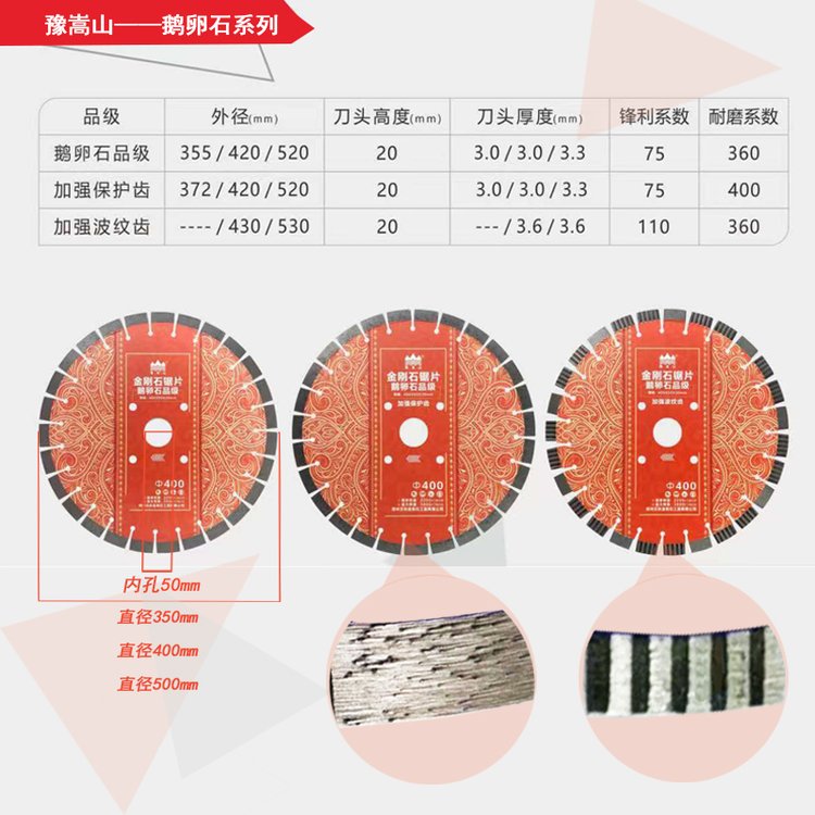鹅卵石级优点 | 高锋利 耐研磨 寿命长 | ||