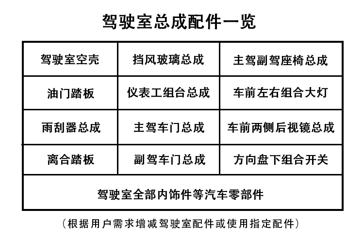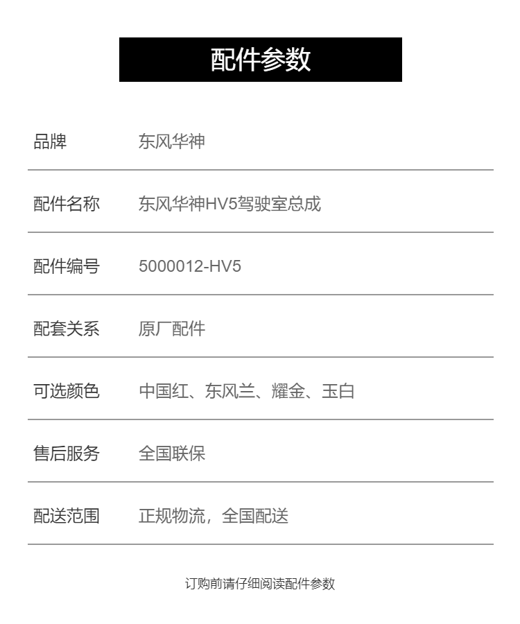配件名称 | 东风华神HV5驾驶室总成 | ||
