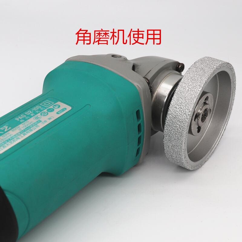 钎焊金刚石手工磨轮主要用于大理石、石英石、陶瓷、地砖等的打磨加工,可以用于开槽,半圆形加工,法国边加工,外径75mm,内孔20mm,可以用于角磨机上。