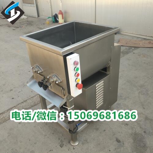 肉类拌馅机,不锈钢拌馅机,香肠馅料搅拌机满足不同肉制品的需要.用于混料的必备设备,效率高、便于操作, 是制作风干肠类产品、粒状、泥状混合肠类产品、天晟牌肉菜搅拌机丸类产品的首选设备。可进行加工成馅状,散状,酱状物料的搅拌混合。整机由优质SUS304不锈钢主要用于鲜肉与配菜,调味品的均匀搅拌,是调味品,配菜更加均匀,腌渍效果更加入味;同时也可节省人力,减少投资。