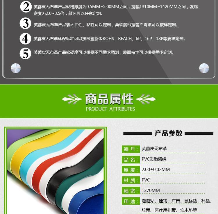 工厂主要生产PVC、PU和半PU等人造革系列。产品包括:热压变色PU革、加厚商标革、植绒革、仿真皮革、沙发皮革、箱包皮革、干湿法PU革、无布革、芙蓉皮、PVC高发泡革、PVC发泡海绵、pvc foam、足球皮革、篮球皮革、汽车坐椅皮革、植绒皮革、礼品盒包装皮革、酒盒包装皮革等。