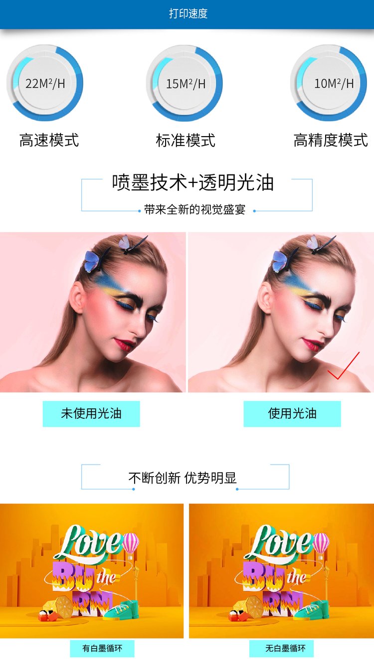 打印材料 | 各种广告材料,装饰材料,工艺品等,如陶瓷玻璃, 金属板,木质板,塑料,墙纸等 | ||