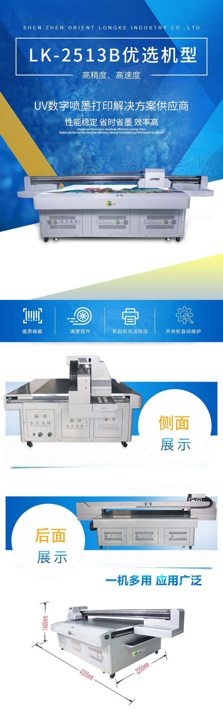 2、可打印任何材质,如广告纸、布匹、金属、塑胶、硅胶、地毯、石材、木板、陶瓷、皮革、玻璃、竹编等等材质(不同得材质需要用到的UV墨水有所不同);