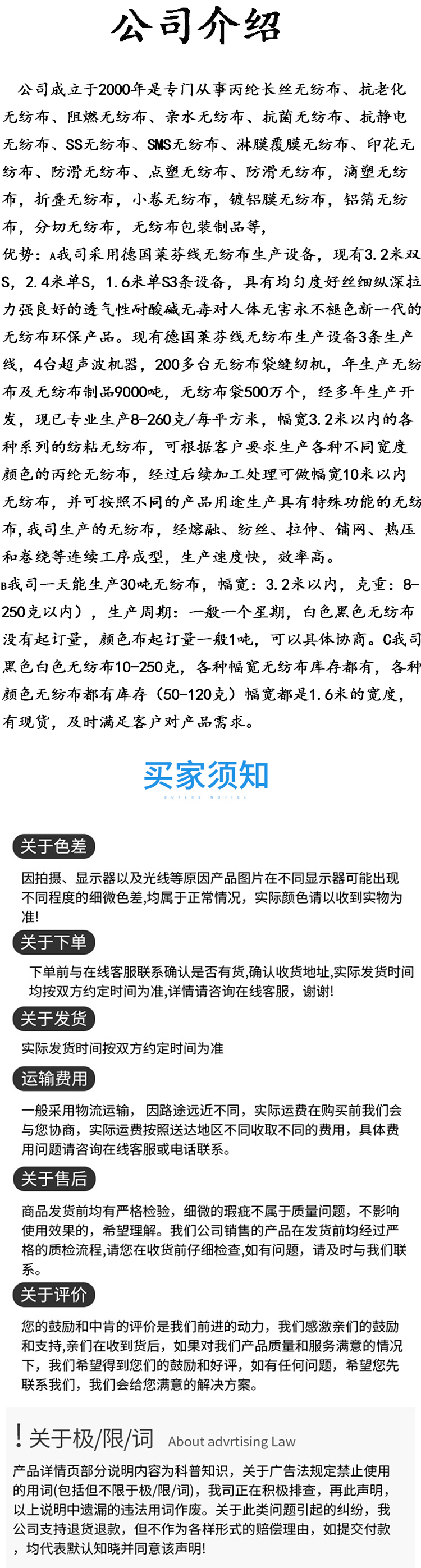 • 规格:无纺布