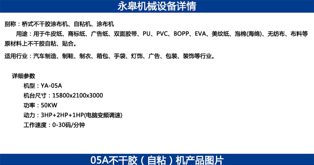 用途 | 牛皮纸、商标纸、广告纸、双面胶带、 PVC、PU、EVA、泡棉(海绵)、布料等原 料材料上不干胶自粘,贴合 | ||