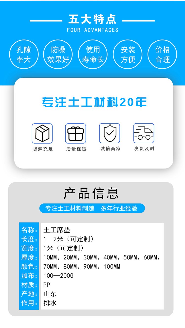 黑色塑料乱丝渗排水网垫园林绿化垃圾清理场土工席垫厂家