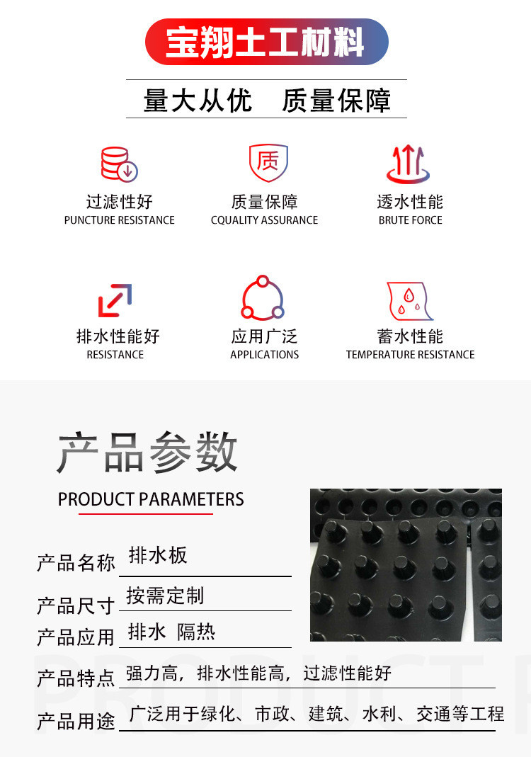 质量 | 样品 免费寄样 搭接方式 胶粘、焊接 产品性能 导水防水 形态 卷材 |