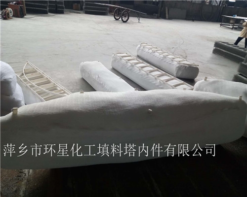 塑料丝网除沫器主要是由丝网、丝网格栅组成丝网块和固定丝网块的支承装置构成,丝网为各种材质的气液过滤网,气液过滤网是由非金属丝组成。气液过滤网的非金属丝由多股非金属纤维捻制而成,亦可为单股非金属丝。该丝网除沫器不但能滤除悬浮于气流中的较大液沫,而且能滤除较小和微小液沫,塑料丝网除沫器主要用于气液分离。亦可为空气过滤器用于气体分离。此外,塑料丝网还可作为仪表工业中各类仪表的缓冲器,以防止电波干扰的电子屏蔽器等。现已广泛用于化工、石油、硫酸、医药、轻工、冶金、机械、环保的工业生产。。