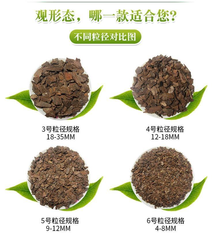 1.以松树皮为原材料,经过收集、破碎、发酵、分级、干燥、去杂等工序精制而成。