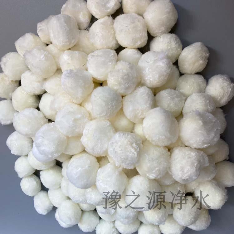 普通纤维球滤料一般选用高醛化维呢纶、定型涤纶丝为原料。在中心处紧密结扎或热熔粘结,使短纤维呈辐射状的球体状。这种纤维球的特征是中心纤维密实,越靠近球边缘纤维越疏松,孔隙率分布不均匀,不容易漂浮上水面,能用自带表面所沾附的大量生物团与污水交叉接触,使其增强吸附力。使城市废水中的难以处理漂浮物(如塑料袋等)、颗粒物(如动物的粪便)等有机物得到降解而达到国家规定二级净化标准。(但其缺点单普通纤维球滤料处理不了工业废水中的汞、铬等有害分子)。
