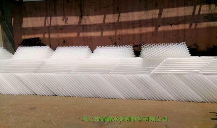 我公司生产的蜂窝斜管填料采用优质的PP和PE为材料,经恒温机械热压而成的连续半边型片材,再将每半六边型片材经焊接或粘结而形成的具有倾角为60度的组合体。