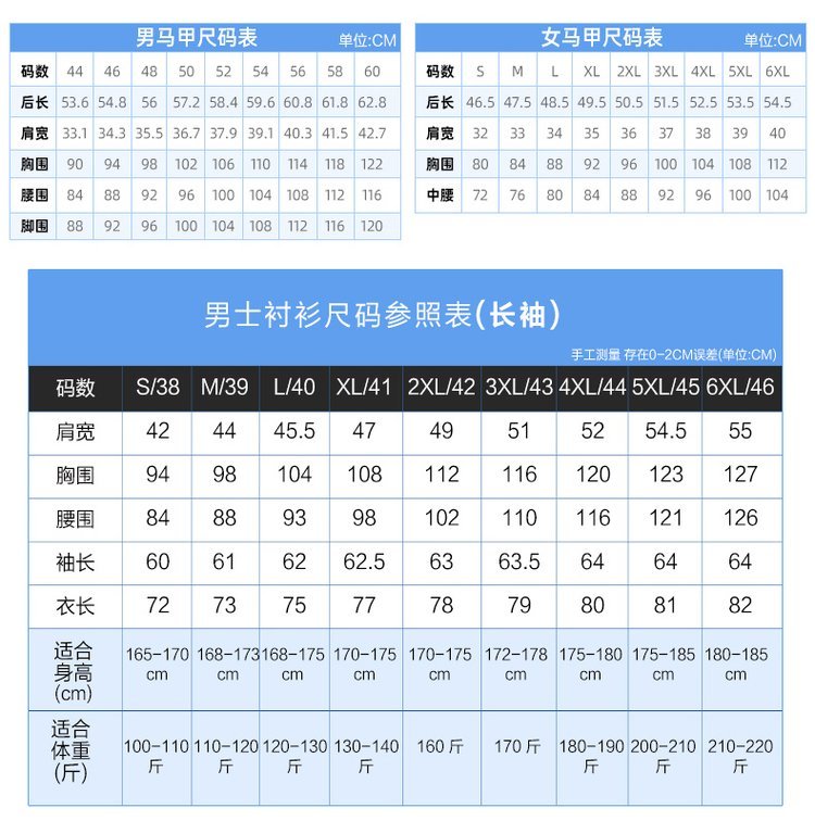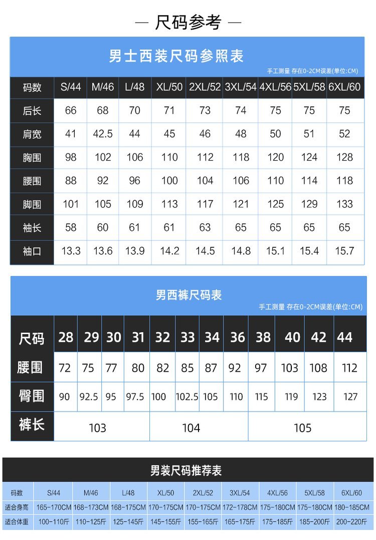 尺码 | 量体定制服 | ||