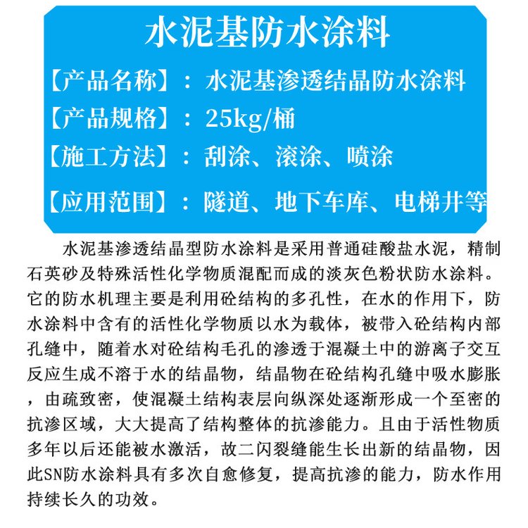 产品名称 | 水泥基渗透结晶型防水涂料 | ||
