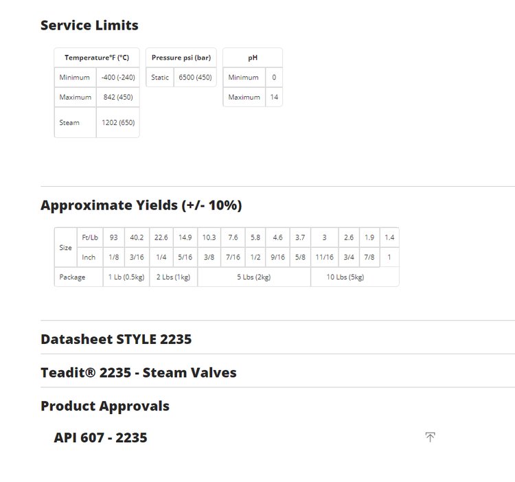 适用范围 | 适合发电厂、炼油厂、石化加工以及高压高温蒸汽密封应用。 | ||