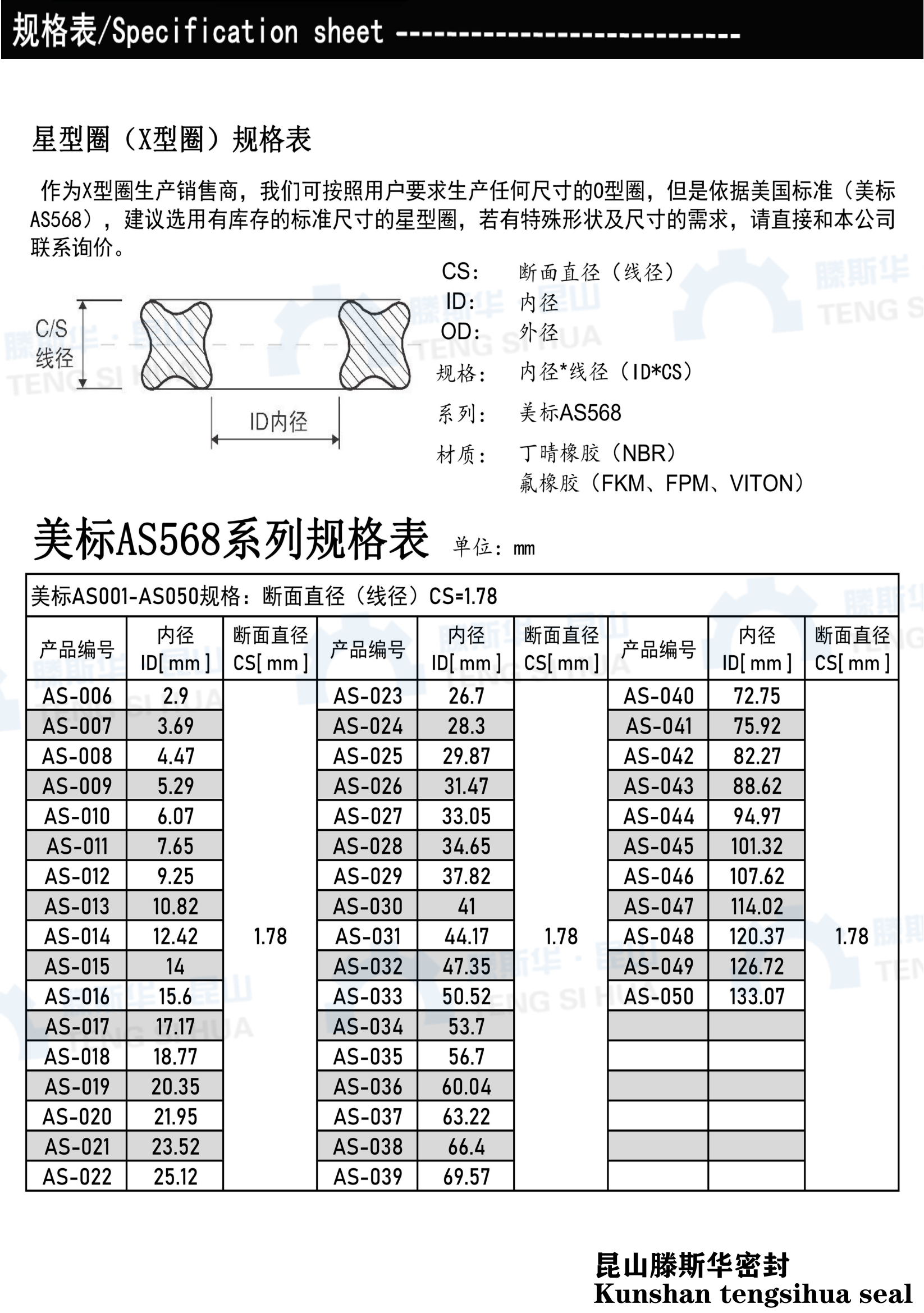 美标X型圈星形圈AS006-050线径1.78mm密封圈丁晴橡胶NBR耐油耐磨