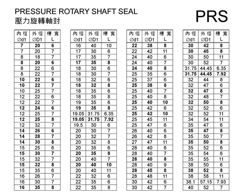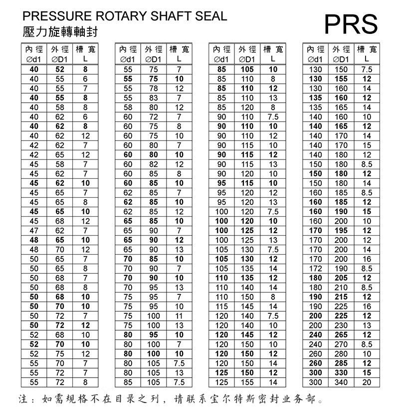 PRS压力旋转油封 由四氟填充青铜的旋转夹套,316l高性能弹簧以及一个高压下保护外径副唇口密封的金属铝垫、尼龙或者聚甲醛挡圈组合而成,适用于旋转同时又压力的情况下, 广泛应用在液压泵或者液压马达上 ,另外要求密封轴的硬度在HRC55以上。