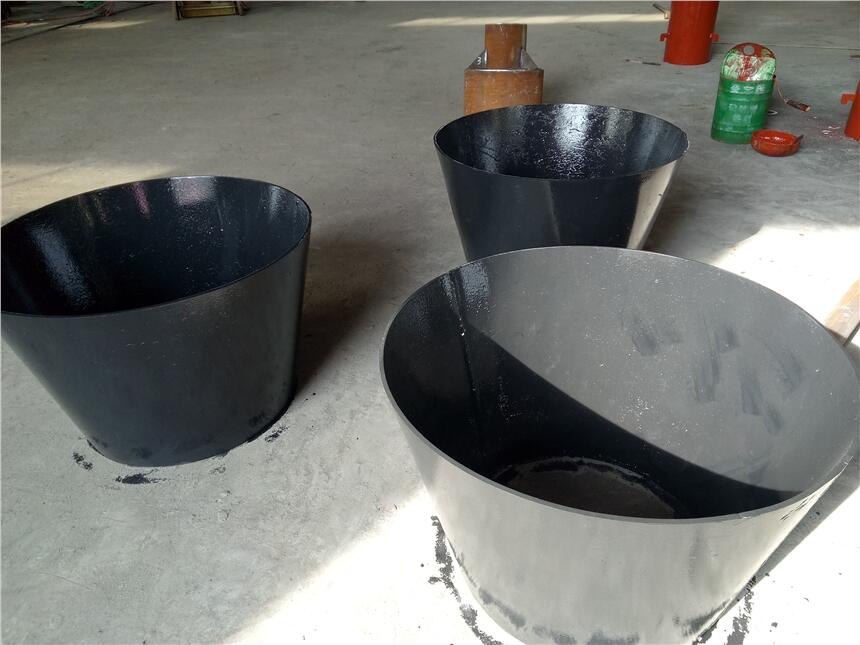 高压异径管管件是金属管材加工异径弯头和异径管接头的一种工艺,在中频加热助推工艺中,将待加工管材按所需要长度截成段,套于芯杆上,内芯头胎具制成与成品配合一致的渐变圆截面体构件,且它与芯杆以可拆卸结构相连接,助推管材沿内芯头胎且移动至一定位置即可成型,它扩大了中频加热助推制造工艺的应用范围,简化了生产工序,增加品种满足施工要求。