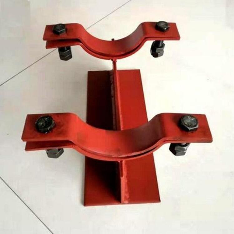 鞍式管托J11型管托 管廊固定型管托 带四氟板滑动管托 批发价格。佰誉卡箍型滑动管托型号标准双螺栓管夹应用于5种尺寸系列的机械压力管子,管子外径6-42mm。管夹装配在焊接板上装配前,为 地确定夹的方向,建议先在固定处做好标记,后焊上焊接,嵌上管夹身的下半部分,放上需固定的管子。再放上另一半管夹身和盖板,用螺钉拧紧。切忌直接焊接已装好管夹的底板。