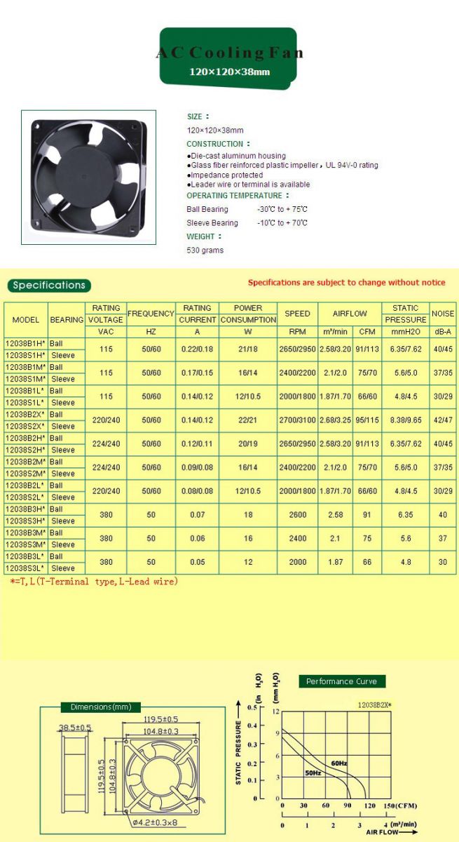 寿 命:工作环境温度40℃ B:(滚珠轴承) 60000(小时) 交流风机、交流风扇、直流风机、直流风扇、轴流风机、轴流风扇、散热风机、散热风扇、离心风机、蜗牛风机、工频离心风机、外转子离心风机、鼓风机、直流鼓风机、防水风机、防水风扇、交流防水风机、交流防水风扇,直流防水风机、直流防水风扇等。 防水电焊机散热风扇,我司可定做高等级真空镀膜防水风扇,等级分为:IP55,IP68,IP69等。