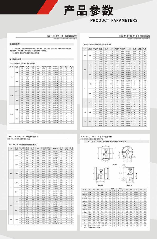 T35-11系列轴流风机是我国八十年代在30-11的基础上改进设计的风机,它与30-11风机相比具有明显优点:①结构更合理:轮毂是圆筒形,减少流动损失,叶片根部强度高;②性能有较大提高:全压效率为89.5,噪声(比A声级)降低3.6Db(A)