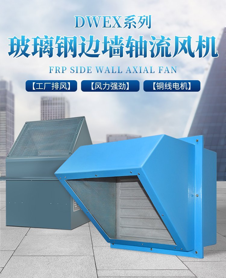 边墙风机 WEX-700D6 1KW 13000m3/h 方形边墙轴流式通风机 工业商用工程排风机扇 玻璃钢防腐排风机采用翼型轴流式叶轮与低噪声电机直联驱动,压型金属板式外壳,具有墙面安装简便、整机重量轻、运转平稳、外形美观。多用于轻钢结构建筑边墙,框窗安装的壁式送排风场合。