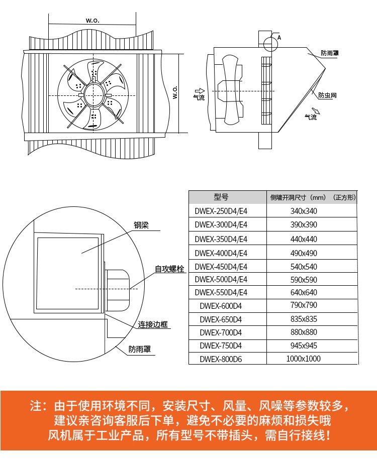 WEXD边墙风机维护的安装及维护说明如下: