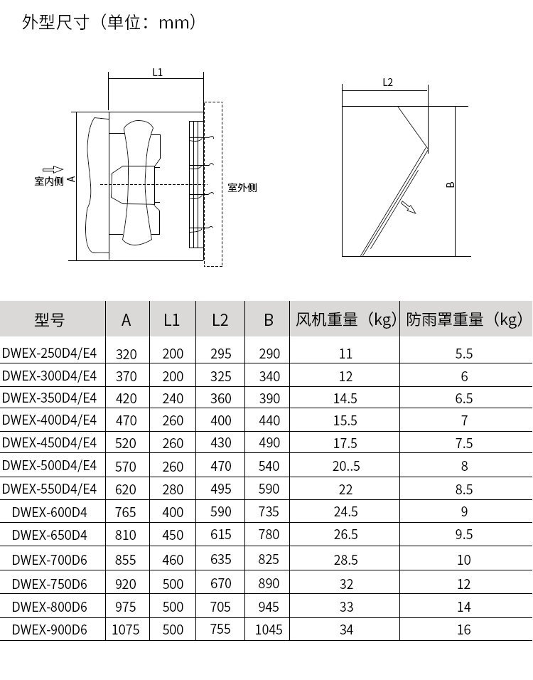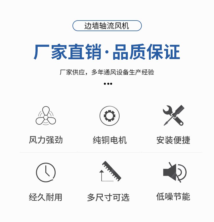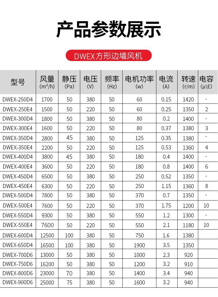 边墙风机 WEX-700D6 1KW 13000m3/h 方形边墙轴流式通风机 工业商用工程排风机扇 玻璃钢防腐排风机采用翼型轴流式叶轮与低噪声电机直联驱动,压型金属板式外壳,具有墙面安装简便、整机重量轻、运转平稳、外形美观。多用于轻钢结构建筑边墙,框窗安装的壁式送排风场合。