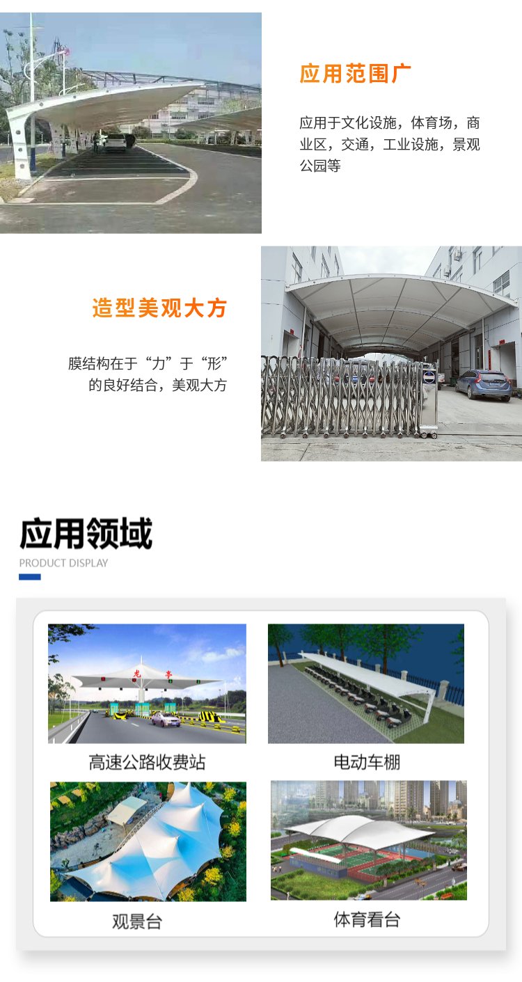 车棚雨棚施工订购支持定制专业生产车棚膜结构遮阳自行车棚